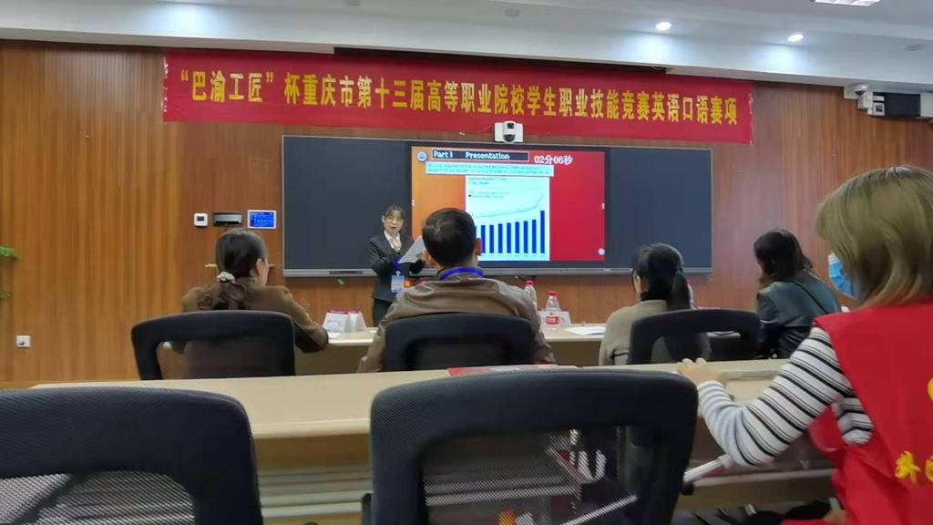 2020年11月7日,“巴渝工匠”杯重庆市第十三届高等职业院校学生职业技能竞赛英语口语赛项在重庆科技学院举行,全市64个本专科学校参与本次竞赛。经过“职场描述”“情境交流”等赛项的激烈角逐,我院赵源老师指导的艺术与文化传播系王虹娇同学凭借标准的发音、自如的表达和敏捷的反应在高职高专组比赛中荣获三等奖的好成绩。