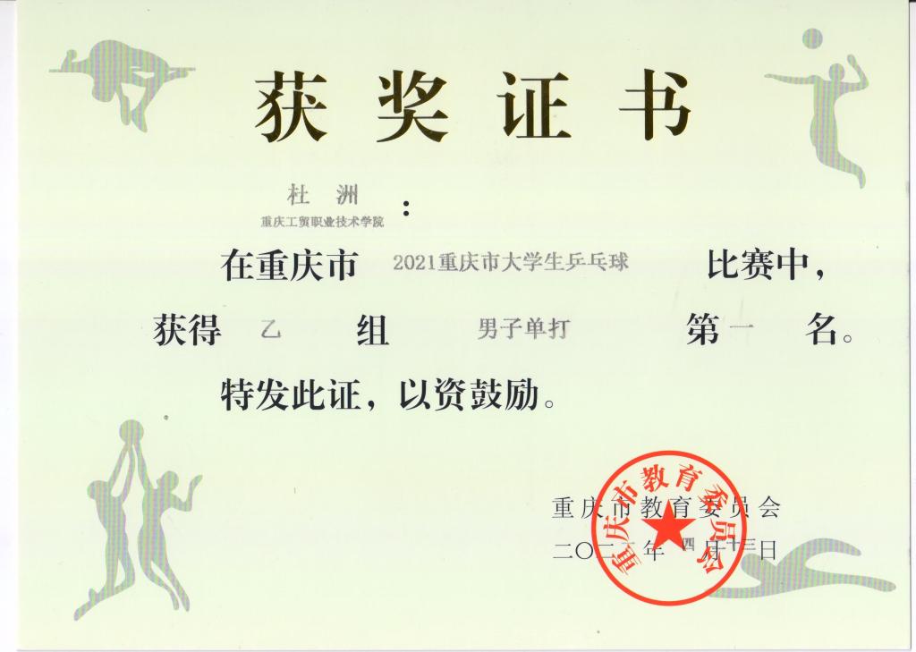 近日, 2021年重庆市大学生运动会上半年各项体育竞赛全部结束,我院参加的乒乓球、田径项目在比赛中, 不畏强手,顽强拼搏,取得可喜成绩。在乒乓球项目比赛中,来自24所高职院校168名运动员,取得男子单打第一名,第三名;男子双打第二名;男子团体第三名,总团体第五名。在田径比赛中,来自36所高职院校517名运动员,获得1金1银5铜,女子田径队荣获团体总分第四名,取得了我校参赛历年来最好成绩。陈义文、陈剑波、韩英三位老师被赛会评为优秀教练员,鞠沅江(乒乓球)、何乾正(田径)、唐明艺(田径)三位学生被评为体育先进个人。通过比赛,检验了我校参加大运会在全市高职院校开展体育项目中的成效,加强同各兄弟院校的学习与交流。